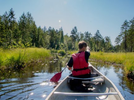 Gemeinsam paddelt ihr unter Anleitung eures erfahrenen Guides entlang einsamer Inseln über die Seenplatte. Das fordert zwar einige Kräfte, aber mit einer großen Portion Teamgeist erreicht ihr eure Tagesziele und könnt danach – oder auch unterwegs – Badestopps und Pausen einlegen, um euch zu erholen und den Sonnenschein zu genießen. Die Verpflegung transportiert ihr neben euren persönlichen Sachen und dem Campingequipment ebenfalls in den Canadiern.
