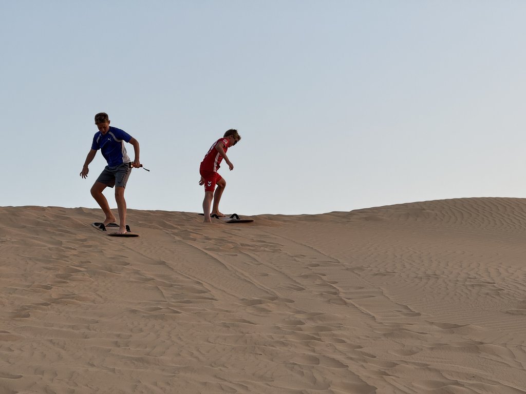 Ein besonderes Abenteuer für die ganze Familie ist ein Ausflug in die Wüste: Gemeinsam fahrt ihr mit dem Geländewagen über goldene Dünen, erlebt den Sonnenuntergang über der Wüstenlandschaft und genießt ein gemütliches Abendessen unter dem Sternenhimmel. Für Kinder ist die Wüste ein riesiger Sandspielplatz mit Kamelreiten, Sandboarding und vielem mehr.