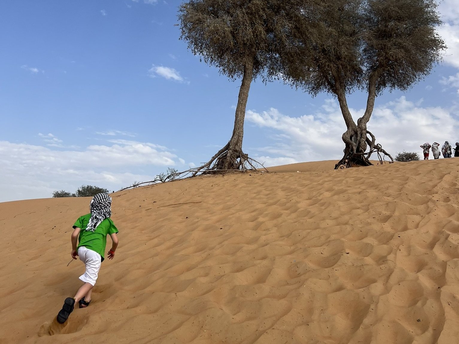 Ein Besuch der Wüste gehört zu den unvergesslichsten Erlebnissen in Dubai mit Kindern, denn die Wüstenlandschaften rund um Dubai und Abu Dhabi sind beeindruckende Gegensätze zu den modernen Metropolen der Vereinigten Arabischen Emirate. Nur eine kurze Fahrt von der glitzernden Metropole entfernt, erstrecken sich kilometerweite Sanddünen, die zum Entdecken und Spielen einladen. Für Kinder ist es ein großes Abenteuer, mit dem Allradfahrzeug durch die Dünen zu fahren und beim Sandboarding oder Kamel-Trekking den besonderen Zauber der Wüste zu erleben.