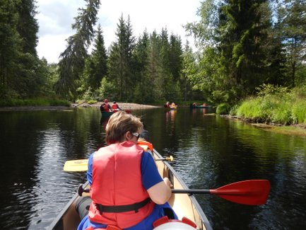 Die Familienmitglieder schlafen gemeinsam im Zelt, paddeln zusammen im gleichen Rhythmus über das klare Wasser der schwedischen oder französischen Seen und Flüsse und lernen die Natur des jeweiligen Landes spielerisch kennen.