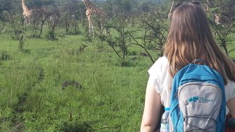 Journalistin Astrid Därr als Alleinreisende mit Kleinkind auf Safari.