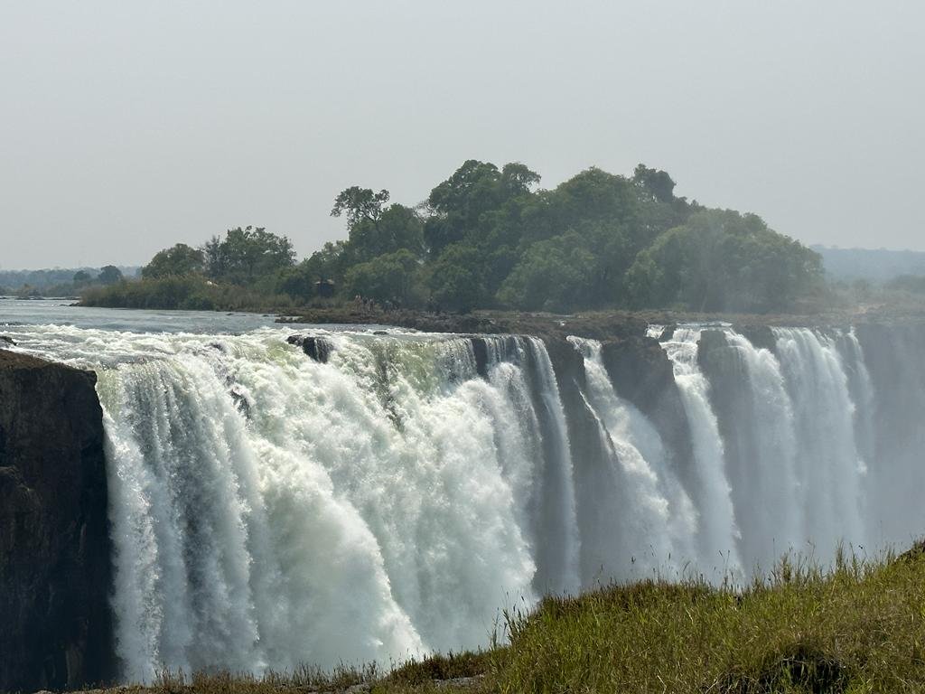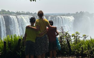 Die Victoriafälle an der Grenze zwischen Sambia und Simbabwe zählen zu den spektakulärsten Wasserfällen der Welt. Von den Aussichtspunkten genießen Familien den Blick auf tosende Wassermassen und Regenbögen im Sprühnebel.