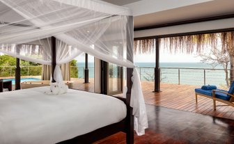 Im Anantara Bazaruto Island Resort habt ihr die Wahl zwischen verschiedenen Villen. Die 58 Quadratmeter großen Beach Villen bieten Platz für zwei Erwachsene und ein Kind und verfügen über direkten Strandzugang sowie eine Terrasse. Noch mehr Komfort für bis zu vier Erwachsene und ein Kind bieten die Sea View Pool Villen mit zwei getrennten Schlafzimmern. Diese sind außerdem mit einer Kitchenette und einem kleinen Schwimmbecken ausgestattet.