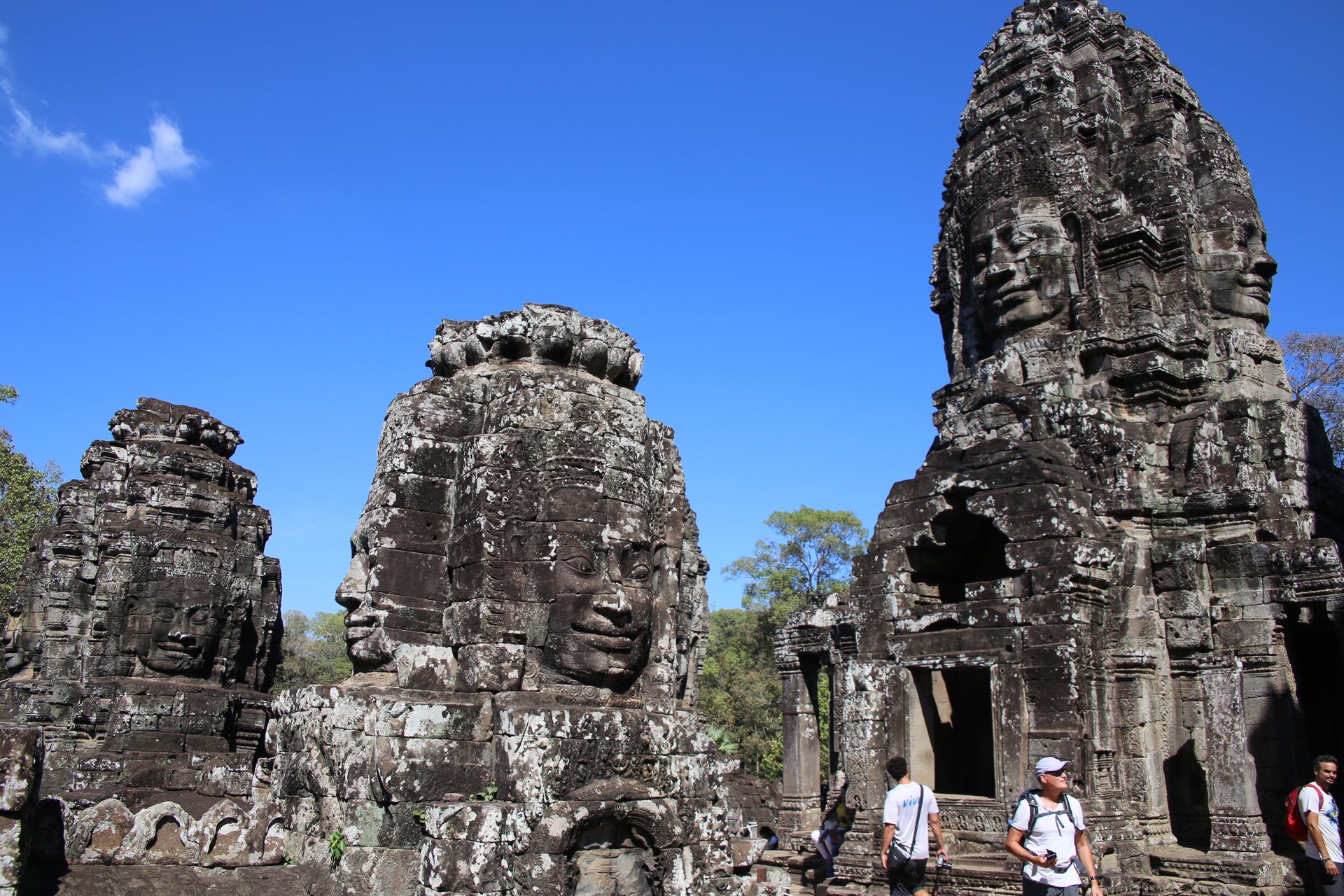 Im Kambodscha Familienurlaub beeindruckt vor allem Angkor Wat. Der Tempelkomplex gehört zu den größten religiösen Bauwerken weltweit und ist ein bedeutendes Symbol Kambodschas. Errichtet im 12. Jahrhundert, fasziniert er mit kunstvoll gearbeiteten Reliefs und monumentalen Türmen. Besonders magisch wirkt die Anlage in den frühen Morgenstunden, wenn das erste Sonnenlicht die steinernen Silhouetten in warmes Gold taucht. Auch die benachbarten Tempel, etwa der mystische Bayon mit seinen lächelnden Gesichtern oder der vom Dschungel umwachsene Ta Prohm, bekannt aus dem Film Tomb Raider, laden zu spannenden Erkundungen ein.