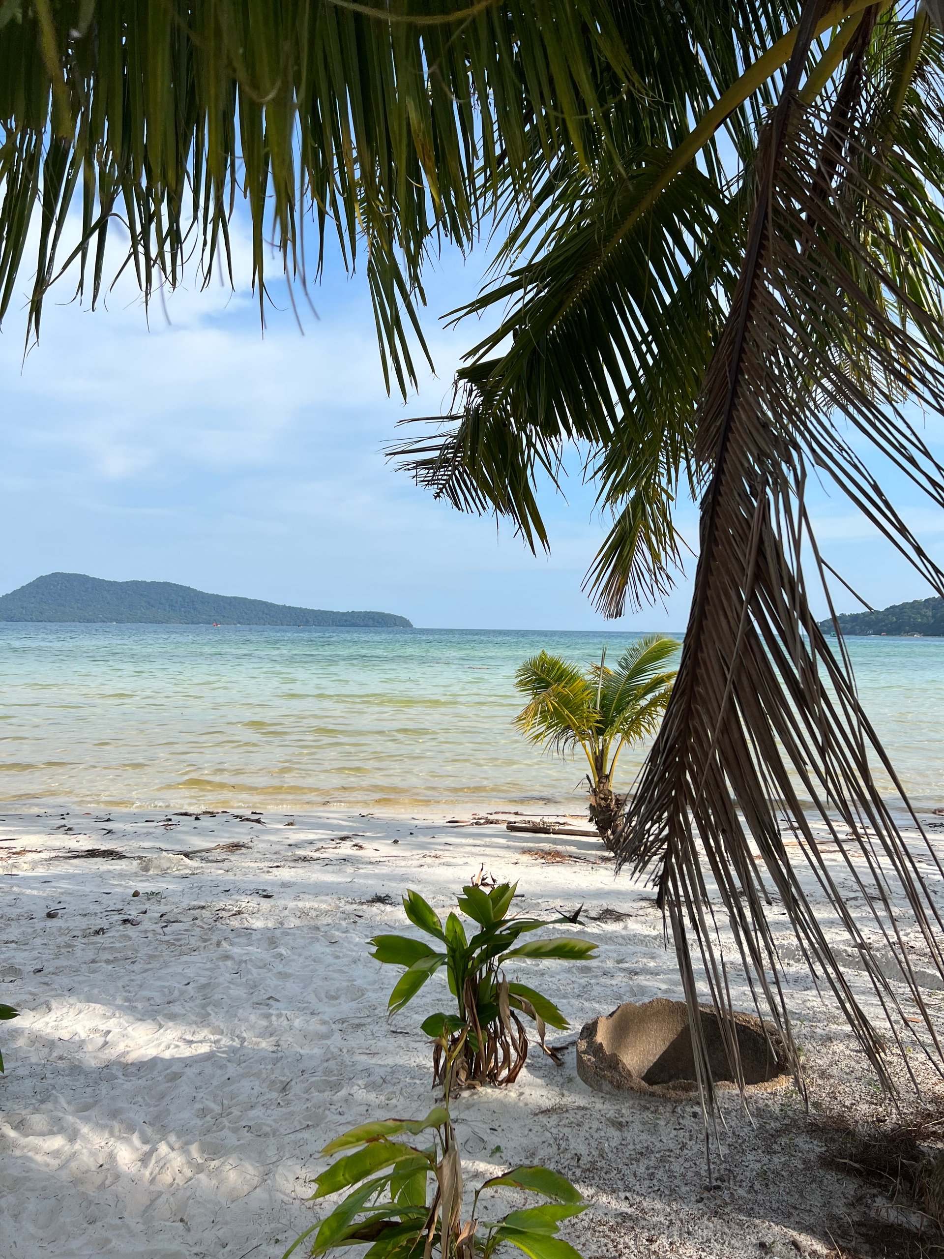 Liegen am weißen Sandstrand von Koh Rong Samloem – Kambodscha Reise mit Kindern