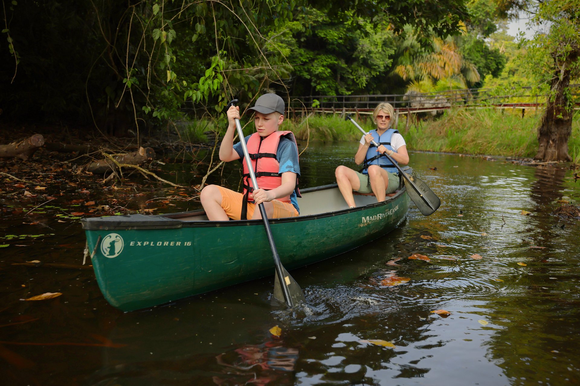 Im Mittelamerika Urlaub für Familien habt ihr viele Gelegenheiten, exotische Tiere in ihrem natürlichen Lebensraum zu beobachten. Besonders in den Regenwaldgebieten beeindruckt die hohe Artenvielfalt: Ihr entdeckt Frösche, Aras, Tukane, Faultiere, Krokodile und viele weitere faszinierende Tiere. Auch im Wasser warten je nach Region spannende Begegnungen auf euch: Wale, Delfine, Schildkröten und bunte Meeresbewohner lassen sich bei Bootsausflügen und Schnorcheltouren entdecken. Doch nicht nur der Regenwald lädt zum Staunen ein, auch Vulkane, Cenoten, Wasserfälle sowie traumhafte Strände an Karibik und Pazifik warten darauf, von euch erkundet zu werden. Ihr besucht zahlreiche Natur- und Nationalparks, macht spannende Wanderungen durch den Dschungel und erlebt aufregendes Rafting oder entspannte Kanutouren. Beim Canopy-Trekking führt euer Weg hoch hinauf in die Baumwipfel und eröffnet faszinierende Perspektiven. Ein ganz besonderes Erlebnis ist die Übernachtung im Regenwald in Costa Rica auf der nachhaltigen La Tigra Rainforest Lodge.