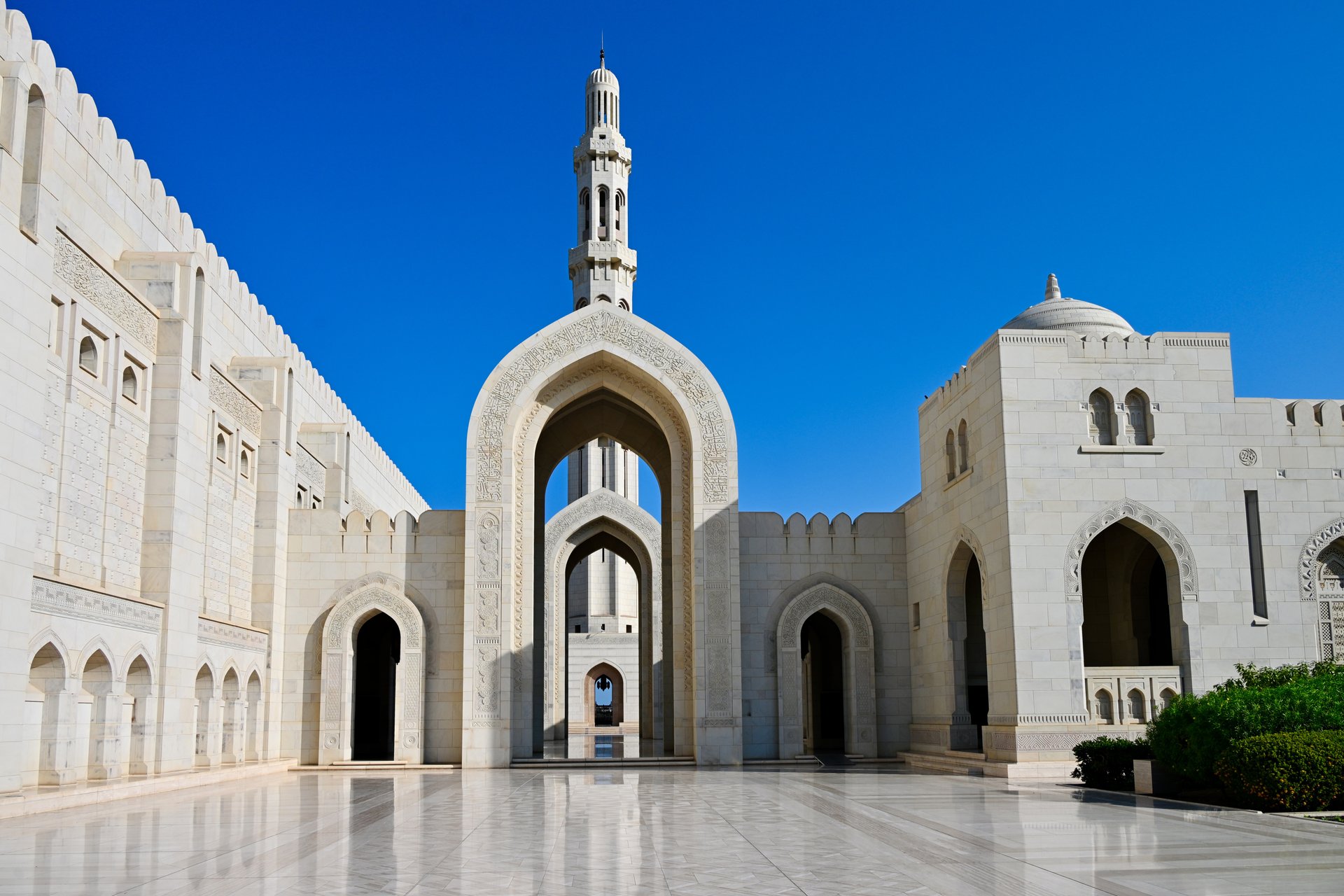 Zu den Sehenswürdigkeiten von Muscat zählen die Sultan Qaboos Moschee, der Palast des Sultans und der Souk. Vor der Küste könnt ihr einen Schnorchelausflug zu den Daymaniyat-Inseln unternehmen oder bei einer Bootstour Delfine im Meer beobachten.