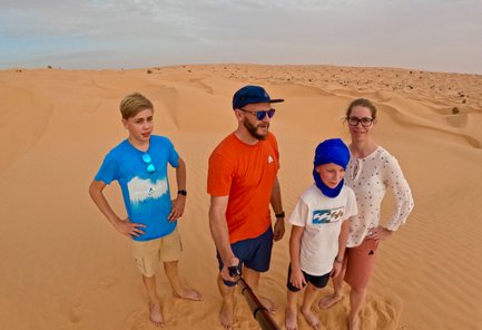 Eine ganz besondere Übernachtung erwartet die Familien in der Sahara. Hier übernachtet ihr in einem Beduinenzelt im Wüstencamp, welches zudem mit einer privaten Sanitäranlage ausgestattet ist und eine warme Dusche bereithält.
