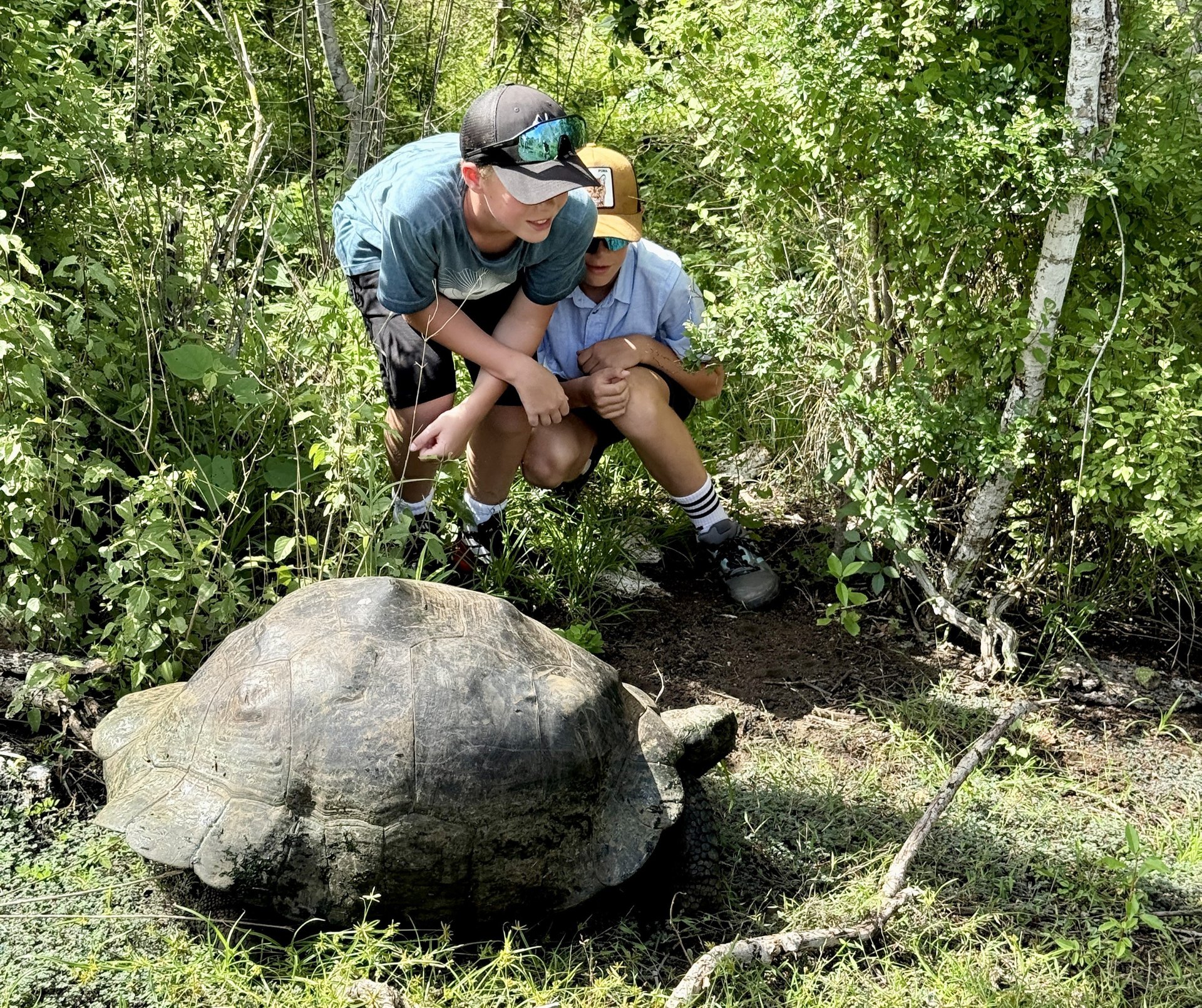 Ein ganz besonderes Highlight auf den Galapagosinseln sind neben den Schorchelausflügen die Begegnungen mit den berühmten, uralten Riesenschildkröten! Sie lassen sich in Aufzuchtstationen oder auch einfach so in freier Natur beobachten. In der Charles Darwin Forschungsstation lernen die Kinder viel über die einzigartige Artenvielfalt und den Schutz endemischer Flora und Fauna.