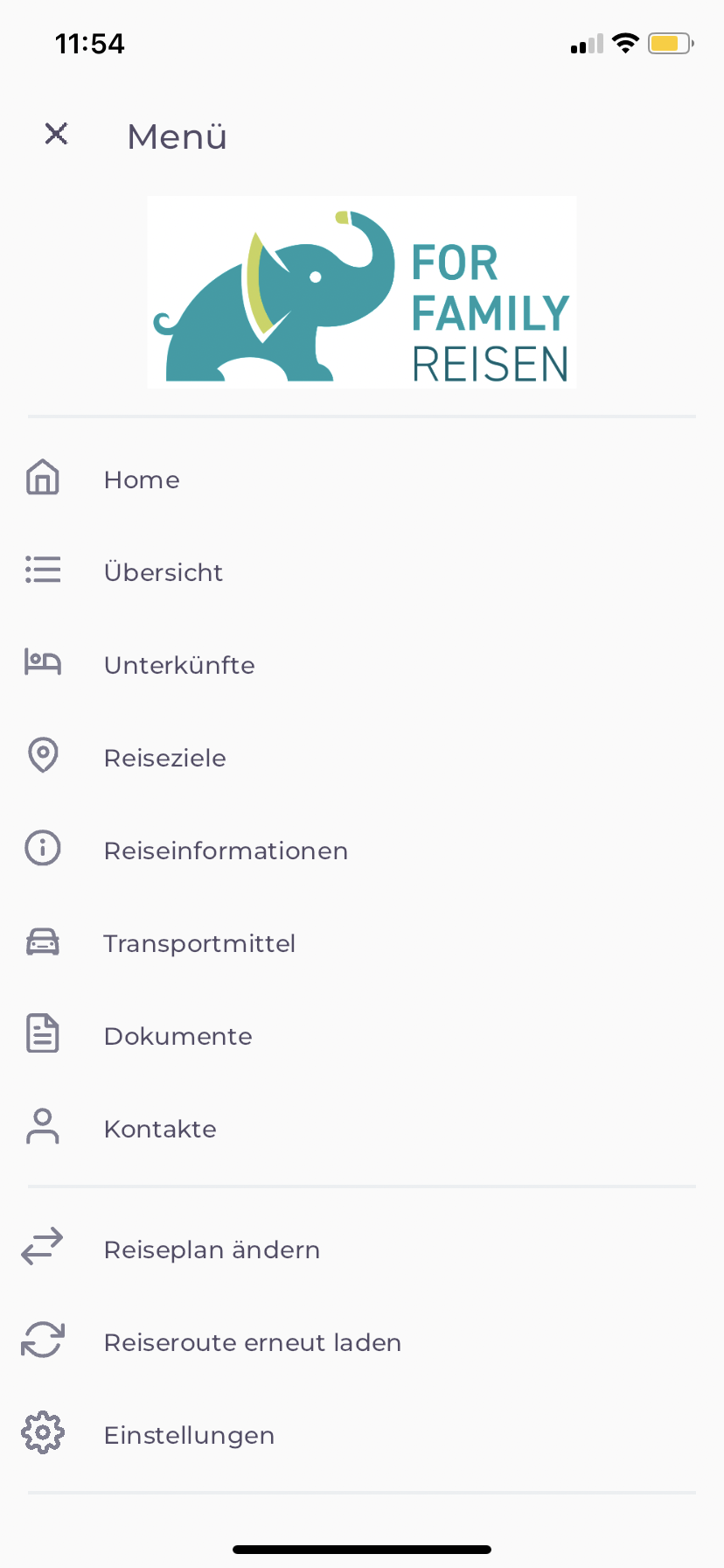 Reist ihr erneut mit For Family Reisen und seid noch mit eurem vorherigen Code in der App eingeloggt? Unten rechts im Menü der App könnt ihr „Reiseplan ändern“ auswählen und so euren neuen Code eingeben.