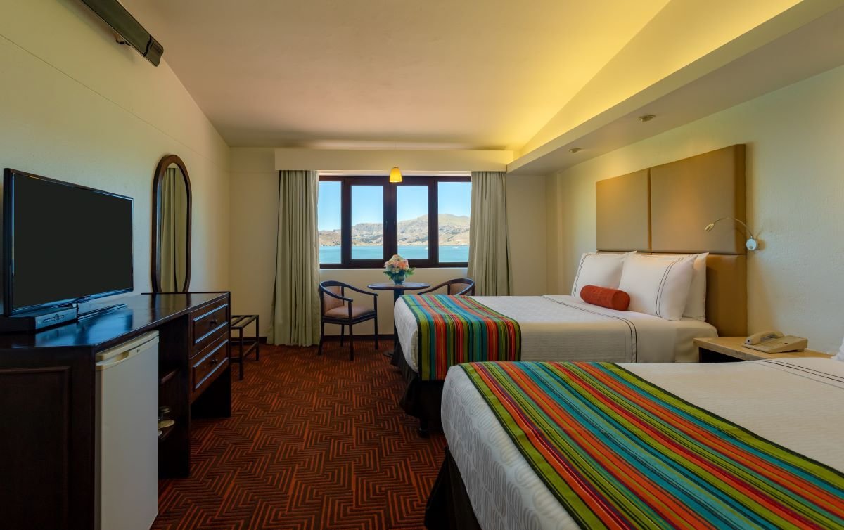 Direkt am Ufer des majestätischen Titicacasees gelegen und nur 5 Kilometer von der Plaza de Armas in Puno entfernt, bietet das Sonesta Posadas del Inca eine ideale Kombination aus Ruhe, Komfort und peruanischer Gastfreundschaft. Die 70 großzügig geschnittenen Zimmer sind modern ausgestattet und verfügen über WLAN, individuell regulierbare Heizung, Kabel-TV, Direktwahltelefon, Haartrockner und einen digitalen Safe – perfekt für einen entspannten Aufenthalt mit der ganzen Familie.