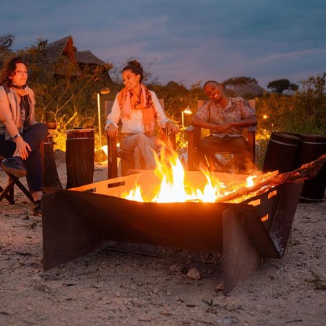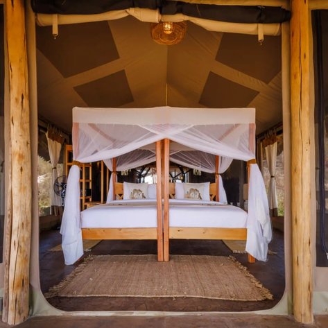 Auf eurer privaten Veranda genießt ihr die frische afrikanische Brise und beobachtet mit etwas Glück vorbeiziehende Wildtiere direkt vom Zelt aus. Der zentrale Gemeinschaftsbereich ist perfekt positioniert, um unvergessliche Sonnenuntergänge über der Savanne zu erleben – ein Ort zum Genießen, Austauschen und Entspannen inmitten der Natur.