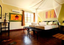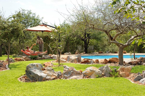 Die Zimmer bieten ein vollklimatisiertes Schlafzimmer mit eigenem Bad und eine Terrasse, um die Schönheit der Umgebung zu genießen. Zwei kleine Kinder (unter 12 Jahren) können mit ihren Eltern auf einer ausklappbaren Schlafcouch in der Lodge untergebracht werden. Zu den Einrichtungen gehören eine offene Bar mit Großbildfernseher, 2 glitzernde Pools plus ein Kinderbecken, ein Restaurant, das köstliche Küche serviert, sowie ein voll ausgestatteter Versorgungs- und Kuriositätenladen. Erkunden Sie Namibias Tierwelt bei einer morgendlichen oder ganztägigen geführten Pirschfahrt zum Etosha National Park. Genießen Sie die Wanderwege in unserem Reservat, wo Sie von den Aussichtsplattformen und Verstecken aus verschiedene Kleinwildarten beobachten können.