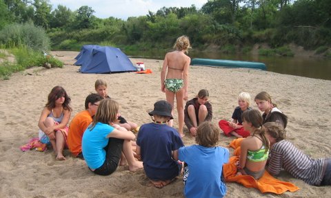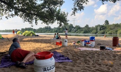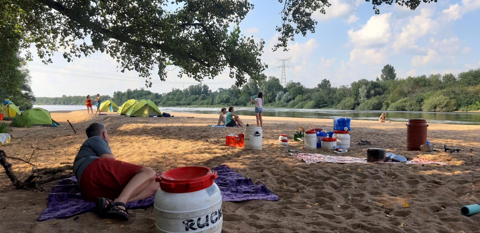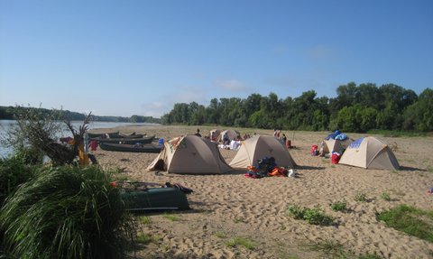 Nachmittags legen wir mit unseren Canadiern am Sandufer an. An der Loire gibt es zahlreiche schöne Plätze mit herrlichen Badestellen. Dort, wo es uns gefällt, schlagen wir die Zelte auf und entfachen ein Lagerfeuer. An einigen Tagen übernachten wir auf familienfreundlichen Campingplätzen. Die Plätze liegen direkt am Flussufer. Hier kann man auch mal duschen und Wasser nachbunkern.